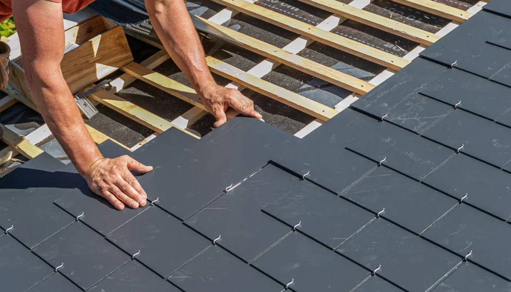 Natural stone roofing made from split slate rock, offering a traditional and elegant finish.